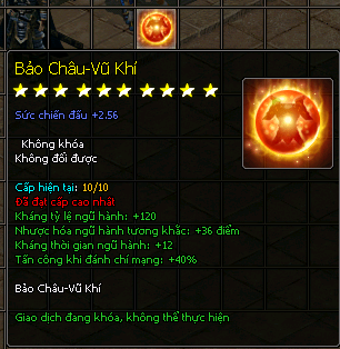 Bảng thuộc tính Bảo Châu Anh Hùng mới
