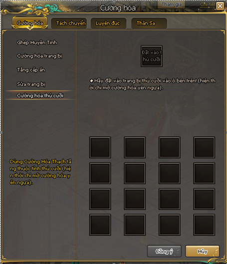 - Dã Luyện Đại Sư thêm dòng chọn “Cường Hóa Thú Cưỡi”.