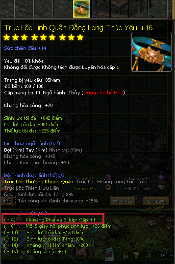 | 1 | Bích Long Anh Hùng Lưu Niên Hạng Liên (+1 kỹ năng phái & 1 Kỹ Năng Già Lam Kinh) |