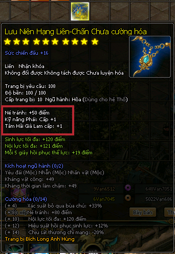| Chân Khí Hoàn | 500 | Không khóa, vĩnh viễn | |