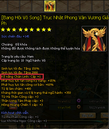 | Mảnh Trung Hồn Thạch | 150 | Không khóa, vĩnh viễn | |