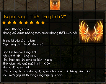 | Cánh Thiên Long Linh Vũ | 65 | Khóa, 7 ngày | |