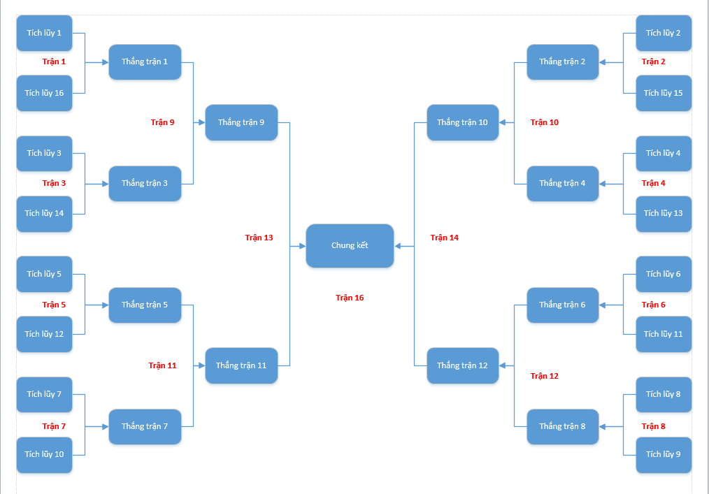| 5 | Đội tích lũy hạng 5 | Đội tích lũy hạng 12 | 13h00 | Đấu trường 2 |