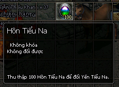 - Hồn Tiểu Na: Thu thập đủ 100 cái sẽ đổi được Bạn đồng hành Yến Tiểu Na (khóa, vĩnh viễn) hoặc Mảnh Độc Cô Kiếm