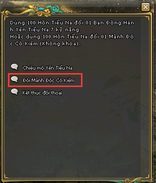 100 Hồn Tiểu Na đổi 1 Mảnh Độc Cô Kiếm