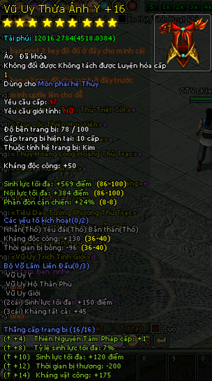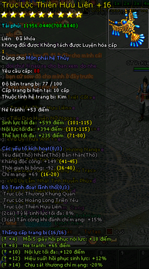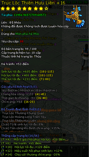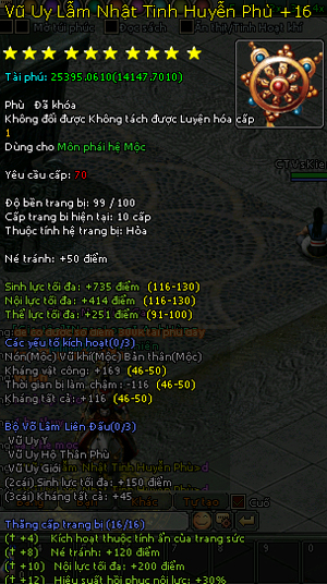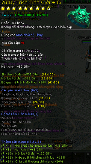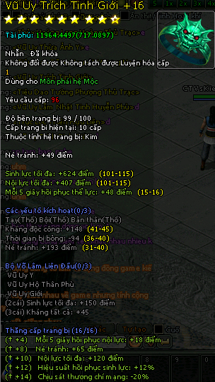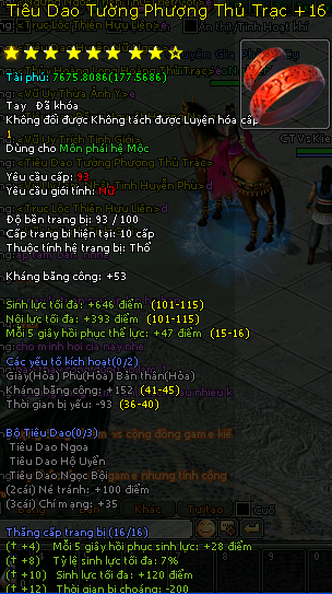 Và một số món trang bị hệ Mộc cũng phát sáng +16...