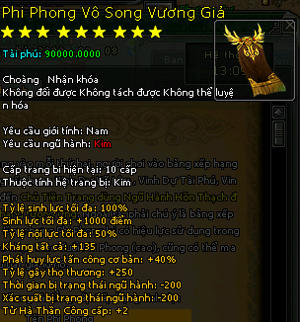 Chỉ trong vòng hai ngày, từ 250k điểm Vinh Dự Tài Phú, cao thủ này đã đạt mốc 300k điểm để khoác lên mình chiếc phi phong Vô Song Vương Giả đầy sức mạnh.