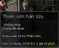 - Nhân vật đã nộp đủ 150 Trường kiếm có thể đến gặp NPC Chủ Thương hội đổi lấy 1 Nhân sâm ngàn năm. Khi đổi phải đem theo 1 bình rượu Thiên sơn hàn tửu.