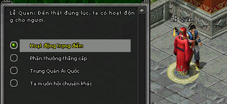 Đối thoại với NPC Lễ Quan tại các Thành thị, Thôn trấn, chọn Hoạt động trọng điểm để nhận phần thưởng: bộ trang bị cường hóa + 10.