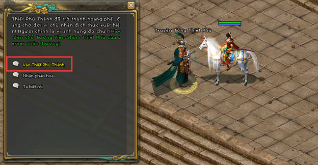 - Thành chủ có thể đến gặp NPC Tướng Viễn Chinh Công Thành Chiến để nhận thưởng.