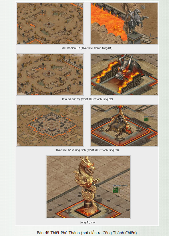 - Bản đồ Vương Tọa: Chỉ có 01 bản đồ duy nhất gồm có 4 Long Trụ và 1 Vương Tọa ở giữa bản đồ. Cá nhân khi chiếm Vương Tọa không thể di chuyển