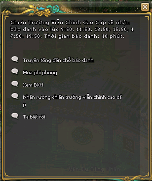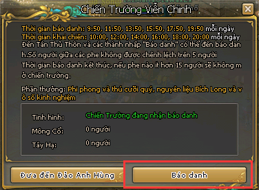 - Từ 20h00 - 20h25 (trừ thứ Bảy), nhân vật có thể xem chiến báo, thời gian còn lại sẽ không thấy được.