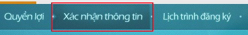 Chọn nút Xác nhận thông tin trên thanh menu của trang thông tin Chăm Sóc Khách Hàng VIP.