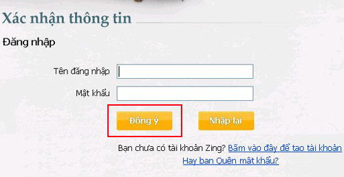 Sử dụng tài khoản Zing ID điền tên đăng nhập, mật khẩu. Sau đó chọn nút Đồng ý