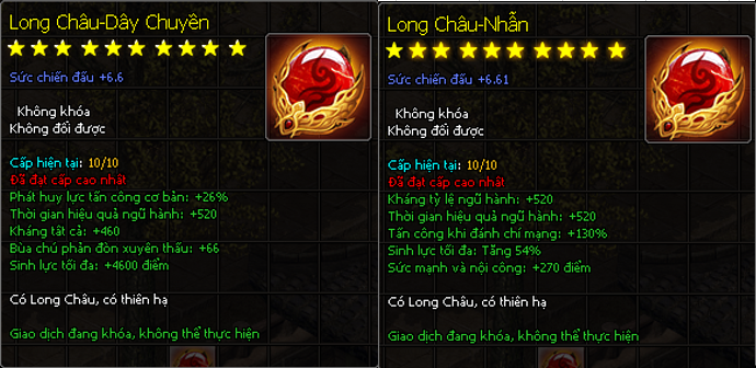 - Cần nâng cấp Bảo Châu lên tối đa cấp độ 10 trước khi muốn nâng cấp lên Long Châu