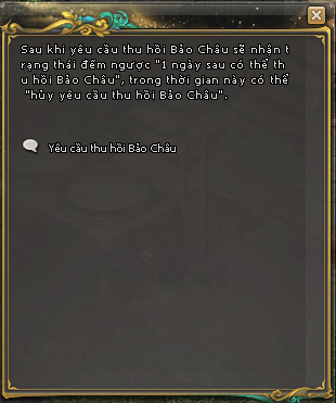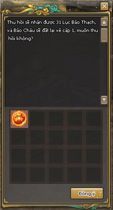 - Chọn Thu Hồi Bảo Châu (chỉ Bảo Châu lv10 mới có thể thu hồi )