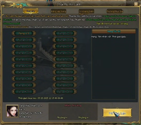 1. Vượt ải Thiên Tầng nhận thưởng thường ngày. Mỗi tuần nhận tối đa: 12 Rương Huyền Thiết, 4 Rương Thanh Đồng và 4 Rương Bạch Ngân 2. Thưởng liên quan đến loại ải: |