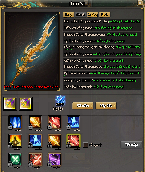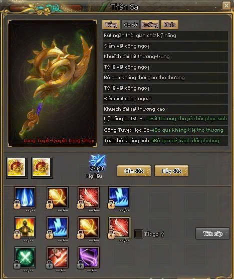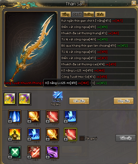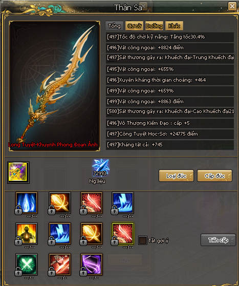 - Sau khi tiến cấp thành vũ khí Long Tuyệt sẽ không thể tăng thuộc tính và Tiến cấp.